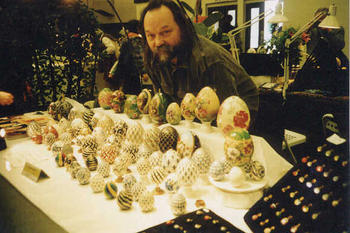 1990-2004 Each year in few weeks before Easter takes part in international exhibitions in France and Germany, that unites from 30 countries working in a variety of media on a common theme:"Art and the Eggs"