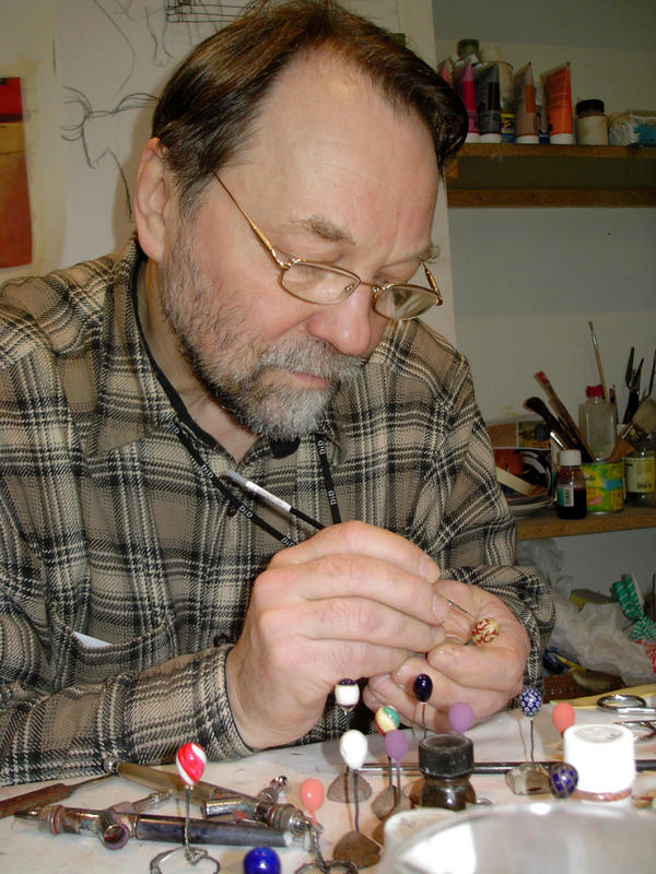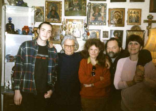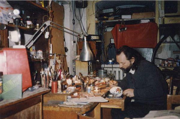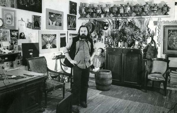 Уютная, большая квартира, в которой можно жить; коллекции, старинная мебель, много икон, картины друзей и подарки, на кухне выстроились в ряд кубки, узорчатые немецкие кружки для пива, - это дом Юрия Петроченкова, известного петербургского художника по фарфору и графика.