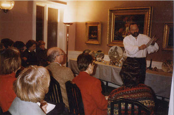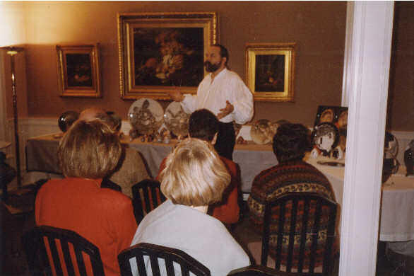 Оседлость, домовитость, традиция, - вот, может быть, три лучших слова для характеристики жизненной позиции и творческой темы Ю.П., а еще - русская внешность, русские вкусы, русское любопытство (к своему и чужому миру) и рачительность. Ю.П. был (и остается) графиком, т.е. художником умственной темы и многозначного изображения (по Максу Клингеру). Однако он перешел на фарфор, потому что любит вещь, которую можно взять в руки, с которой можно жить вместе. Фарфор - это уже не только линии и формы, но и быт, комнаты, шкафчики-горки, гости, рассматривающие фигурки и сервиз. Ну, а быт - это Традиция.