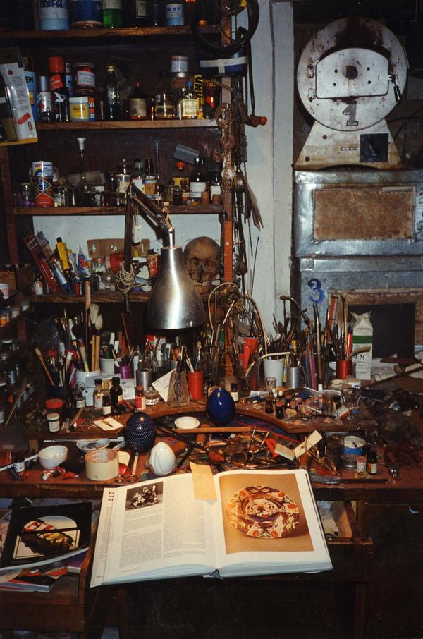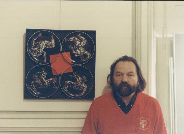 Сам Ю.П. говорит о себе, вспоминая песенку из фильма: "Я не советский и не кадетский", и более серьезно: «Я не модернист, я не авангардист, я последний представитель...». Представитель чего? Ради того, чтобы литературно сформулировать ответ на этот совсем не простой вопрос, Ю.П. позвал меня, рассказал о своей работе, о своих поездках, о мастерской, и все время подчеркивал свою позицию невмешательства, ненавязчивости: «Меня здесь никто не знает, я не лезу, знают там и те, кому нужно, их немного». В мастерской Ю.П. нет дневного света и переполнена всевозможными приспособлениями, от печи для обжига идет жар. Это, как он сам говорит, моя алхимия, там я работаю постоянно, как рабочий, но «рабочий», конечно, особый, одаренный большими знаниями, воображением и взыскательным вкусом, как «аристократ», на которого он нередко рассчитывает, Я думаю, что Ю.П. действительно представитель, хотя и не последний, характерного русского типа умельцев и наблюдателей краем глаза. Зорко подсматривает он из своего подвала за тем, что делается там, в свете, о чем говорят, над чем смеются, и переносит это в свою сферу, сливая злободневное с благородным веществом фарфора. Равновесие в жизни дает ему этот труд и этот объективный материал, с которым он день и ночь возится. Именно он дает ему свободу и право подсмеиваться, пародируя жизнь и мастеров. Это, и вправду, параллельный мир. Однако, как и всякая параллель, он представляет собой результат сдвига, удвоения или отражения первоначальной линии, так что с тем миром, с которым Ю.П. вроде бы не имеет ничего общего - с миром политики, страстей, «современного искусства» - он запараллелен и, таким образом, включен в единую «кобальтовую сеточку» современной русской культуры.