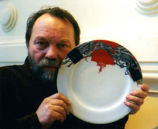 Не только оптические эффекты (в духе Эшера и др.), но и возможные, виртуальные ситуации, которые заставляют сжаться сердце любителя фарфора, становятся предметом фантазии художника: «Вот и разбилась наша тарелочка» (авторская подпись Ю.П.) -постоянный мотив его мрачных шуток; две тарелки, сросшиеся в одну и с отбитыми краями, округлая форма, превращающаяся на глазах в угловатую, прорехи в фарфоровой массе, - все эти абсурдистские эффекты часто встречаются в других видах искусства, но не в фарфоре. Авангардисты скорее обходили фарфор стороной, эксперименты Суетина не породили большой традиции, экспрессионисты тоже быстро оставили фарфоровые мануфактуры. Фарфор в традиционном понимании - инертная, хорошо сопротивляющаяся внешним влияниям сфера. Однако, стоит заметить, что в походе на фарфор авангардисты заходили со стороны формы, цвета. Ю.П. на основе русской традиции развлекательной дидактики выявляет в фарфоре совсем другой момент, который, вообще-то говоря, со времен барокко в не меньшей степени характеризует его специфику: это аттракционность фарфора, его открытость к любым формам и содержаниям иллюстрирования, транслирования значений и образов - и все это в виде театра фигур и знаков, связанного с обиходной формой. Характерно, что Ю.П. почти не изобретает новых форм, а просто закупает «белье» на заводе. Специалист по семантике фарфора, он превращает молчаливую утилитарную форму в рассказ, а тем самым -овеществляет и закрепляет этот рассказ в истории, ведь его фарфор, полный бытовой и политической злободневности, сразу же попадает в коллекцию, образует музей картинок и речений. Таким образом, его фарфор — это средство создать маленькую кунсткамеру культуры, в которой традиция, актуальность и уникальность, мимолетное значение и ширпотреб образуют единое целое, как в жизни.